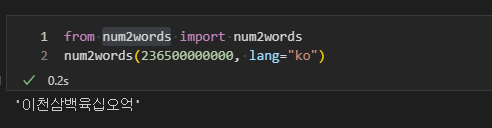 num2words 를 사용하여 한글도 나타낼 수 있습니다.