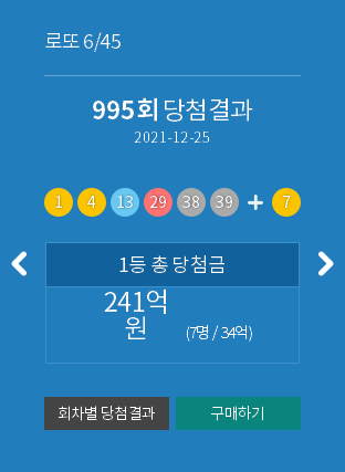 995 회 로또 당첨 결과 입니다. 이번 995 회는 7 명이 1등에 당첨됐네요.