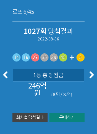1027 회 로또 당첨 결과 입니다. 이번 1027 회는 10 명이 1등에 당첨됐네요.