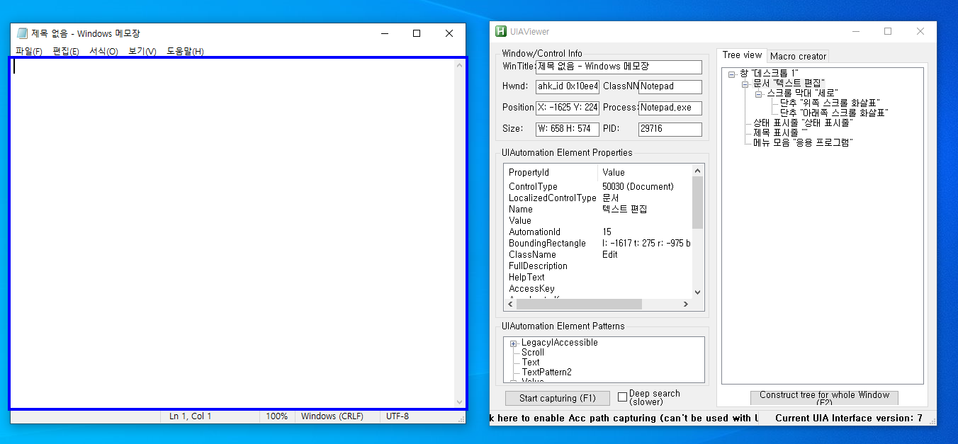 아래 그림은 UIATreeInspector.ahk 를 실행한 모습이고