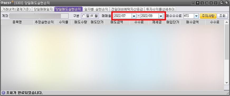 저는 위 코드를 활용하여 eBEST Pro 마스터 HTS 프로그램의 “[6303] 당일매도실현손익” 화면에서 “월” 을 입력 할때 활용하고 있습니다.