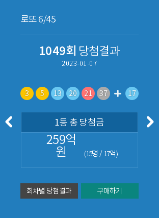 | 로또 1045 회 당첨번호 모음 및 최근 안 나온 수, 최근 많이 나온 수, 5등 당첨 (1) | 2022.12.10 |